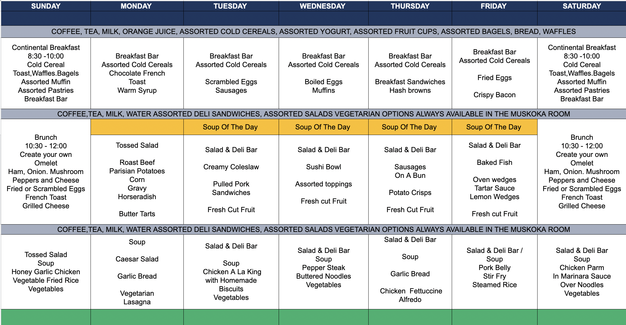 RLC provides three meals a day, operating seven days a week. Sunday mornings are popular—students can order the style of eggs they want and request favourites like grilled cheese sandwiches, French toast, waffles, pastries, and muffins.